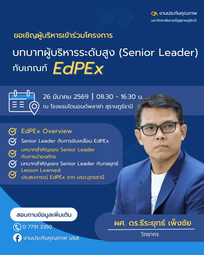ขอเชิญเข้าร่วมโครงการ “บทบาทผู้บริหารระดับสูง (Senior Leader) กับเกณฑ์ EdPEx”